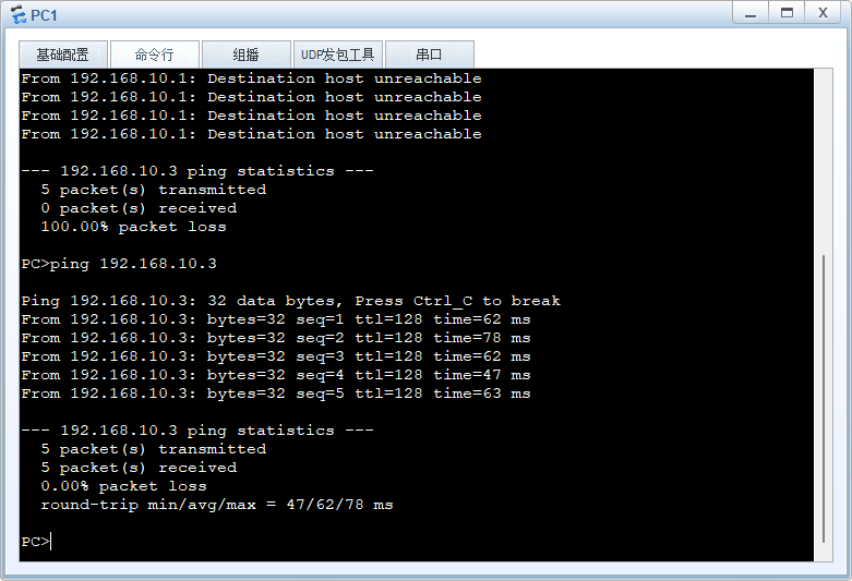[SW2-GigabitEthernet0/0/3]port trunk allow-pass vlan 10 20测试通信