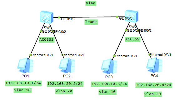 Vlan-ACCESS接口+Trunk接口