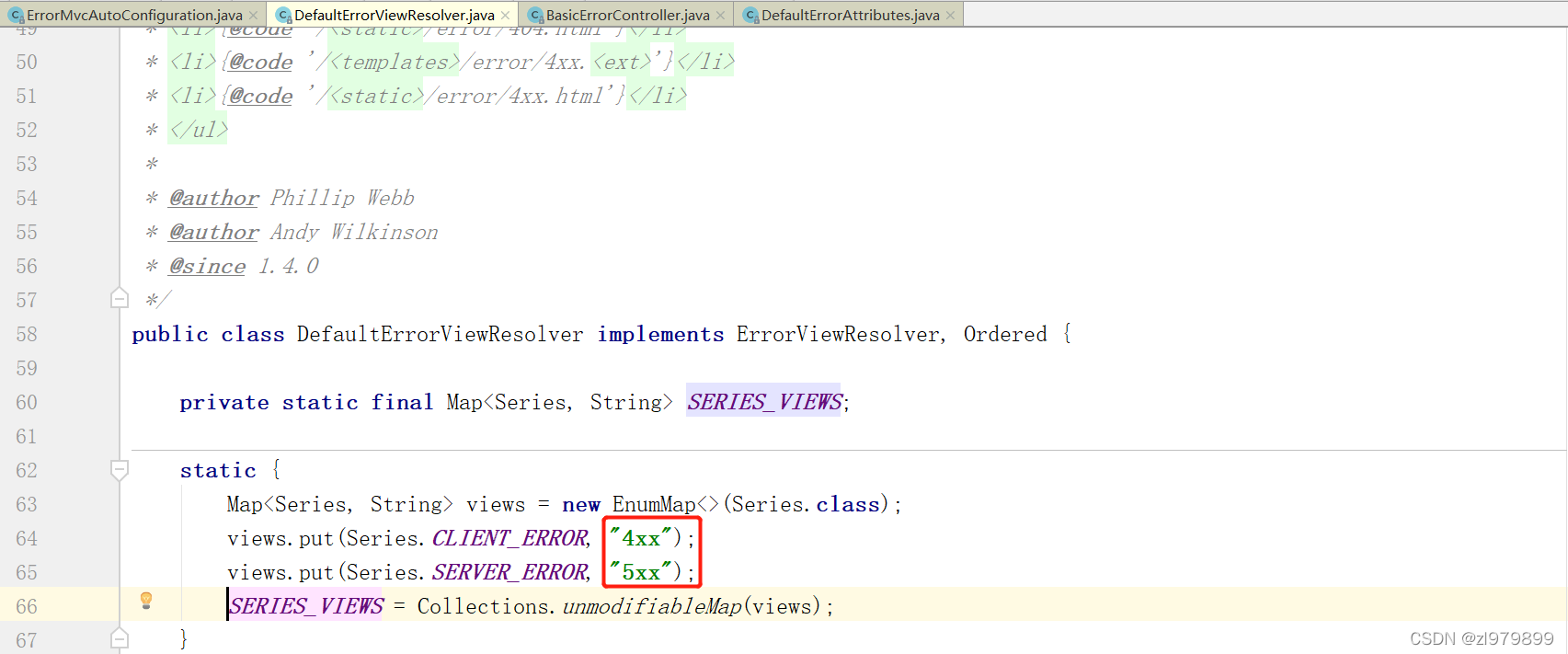- 默认的 DefaultErrorViewResolver ,作用是把响应状态码作为错误页的地址,error/500.html