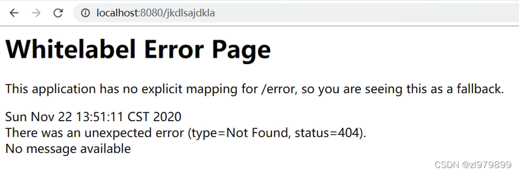 3. 对于浏览器客户端,响应一个“whitelabel”错误视图,以HTML格式呈现相同的数据