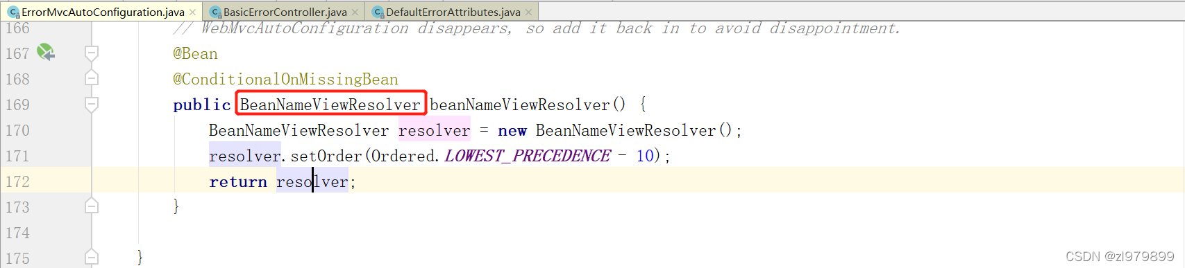 4. 自动添加组件:类型:DefaultErrorViewResolver -> id:conventionErrorViewResolver