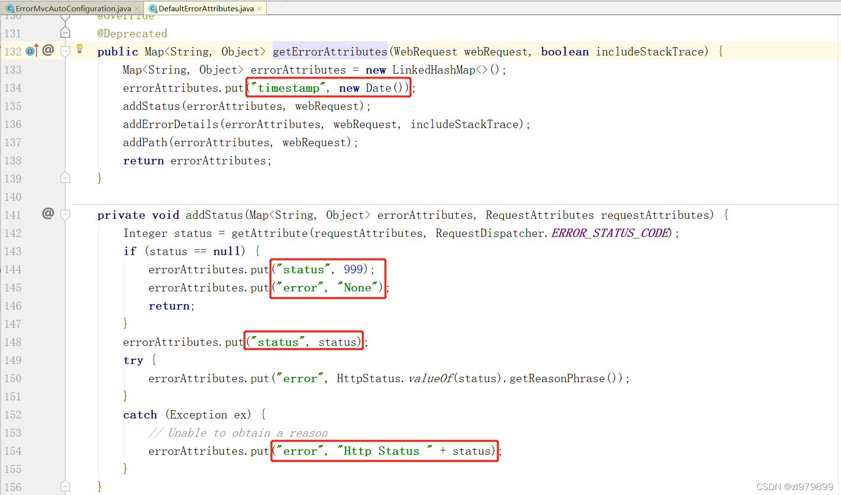 - DefaultErrorAttributes implements ErrorAttributes,HandlerExceptionResolver