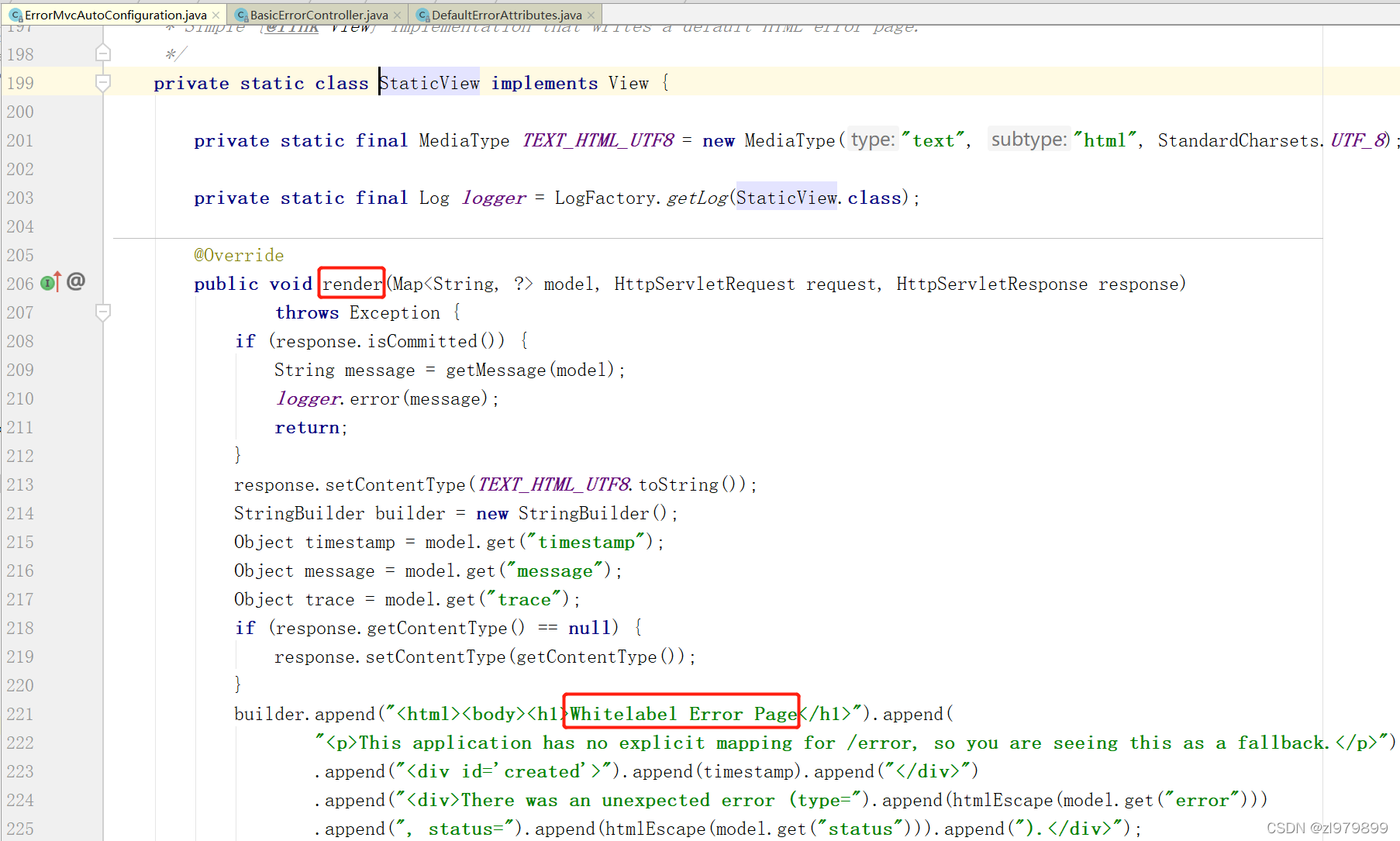 - 处理默认 /error 路径的请求;页面响应 new ModelAndView("error", model),
