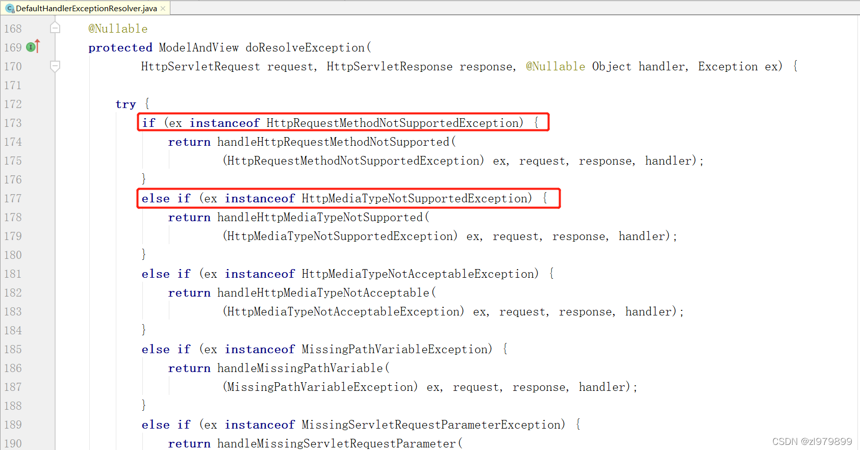 - 然后交由HandlerExceptionResolverComposite,遍历其中的异常处理器处理,但此例子默认无法处理
