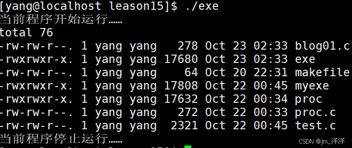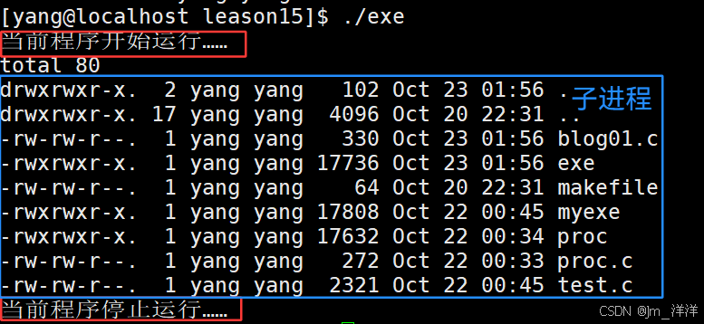 #include <stdio.h>int main() {printf("当前程序开始运行……\n");if(fork()==0){execl("/usr/bin/ls","ls","-l","-a",NULL);exit(1);//如果返回并继续向下执行,说明替换失败,直接退出;}waitpid(-1,NULL,0);//进程等待printf("当前程序停止运行……\n");