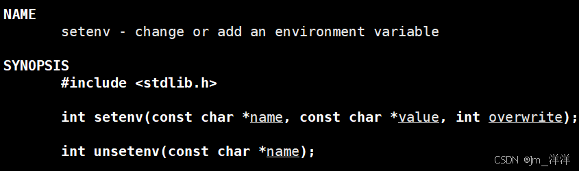 原型:int setenv(const char *name, const char *value, int overwrite);