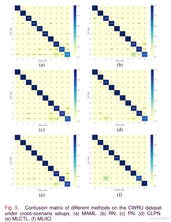 图5的混淆矩阵进一步验证了MLIIO在易混淆故障类型(如球故障BF)上的优越判别能力: