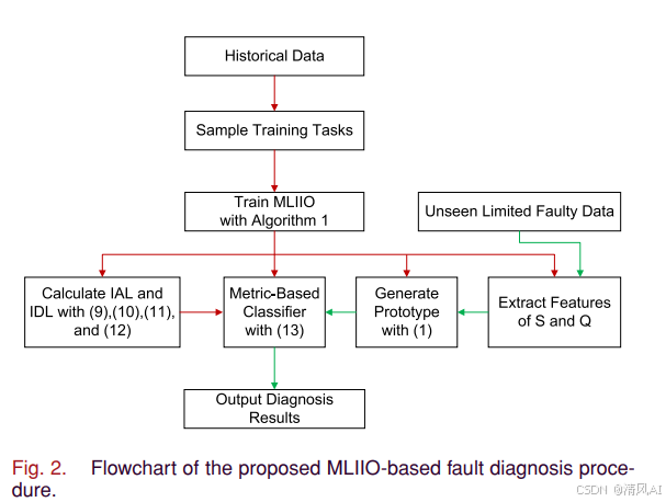 MLIIO方法基于度量学习元学习(MML)框架,通过设计新型损失函数来优化特征空间。整体诊断流程如图2所示:
