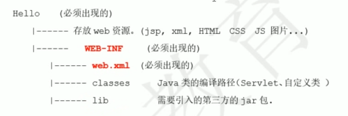 当我们需要创建自己的项目时,必须遵循JavaEE目录结构规范。下面以hello项目为例,详细介绍其目录结构: