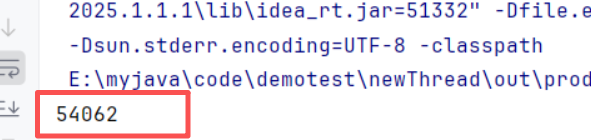 public class Demo1{private static int count=0;public static void main(String[] args)throws InterruptedException{Object obj=new Object();Thread t1=new Thread(()->{for(int i=0;i<5000;i++){count++;}});Thread t2=new Thread(()->{for(int i=0;i<50000;i++){count++;}});t1.start();t2.start();t1.join();t2.join();System.out.println(count);}