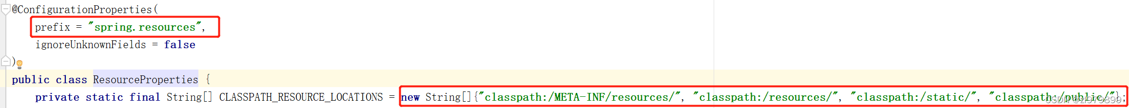 - 当前2.3.4版本中WebMvcProperties配置文件前缀为spring.mvc、ResourceProperties前缀为spring.resources