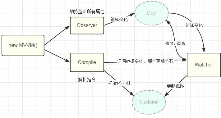 1. 利用Proxy或Object.defineProperty生成的Observer针对对象/对象的属性进行"劫持",在属性发生变化后通知订阅者