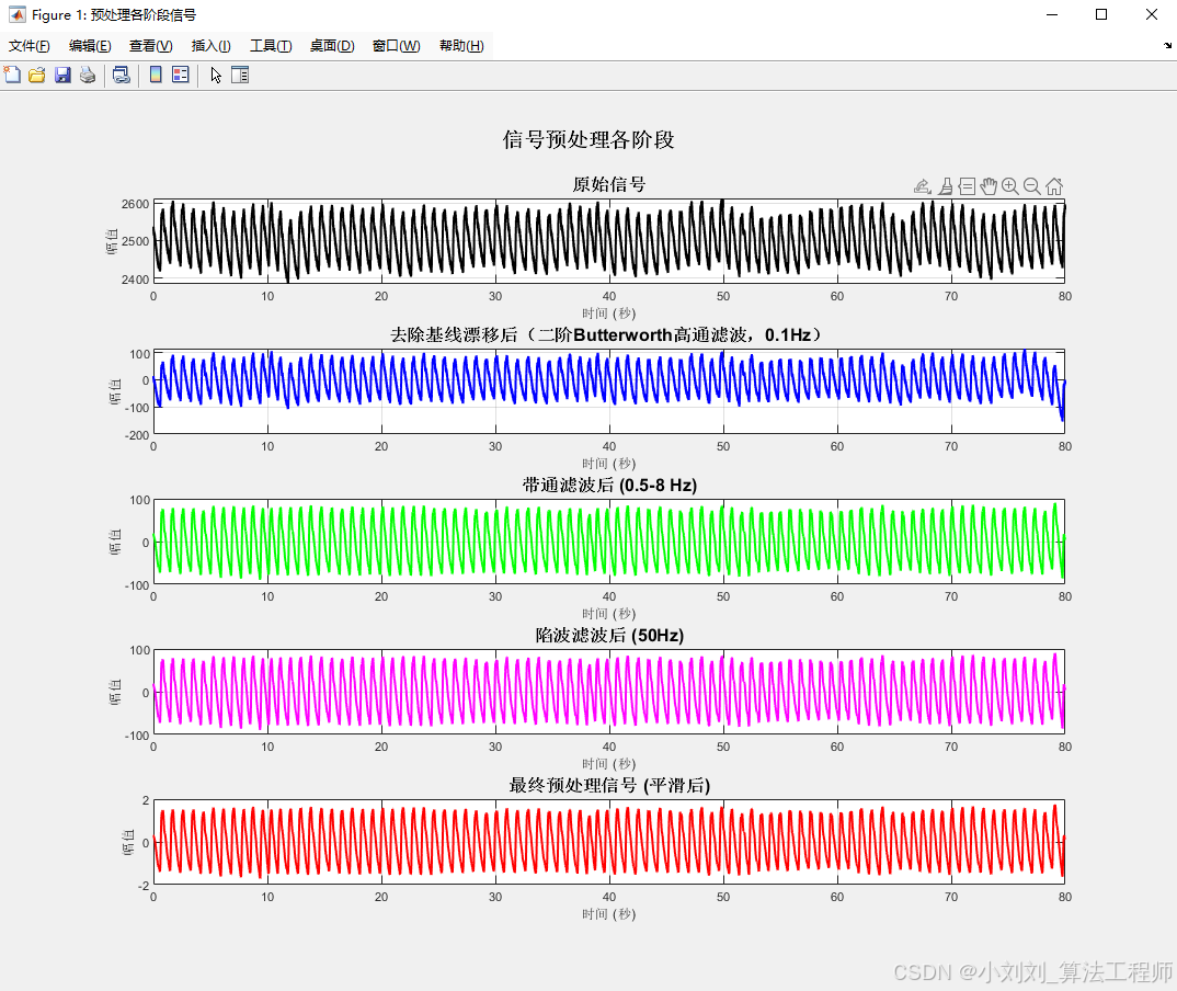 本方法构建了四级串联滤波系统,确保信号质量的同时保留有效生理信息:
