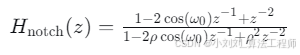 其中w_0 = 2pi*f_0/f_s,ρ决定陷波带宽,确保有效抑制工频干扰的同时最小化信号失真。