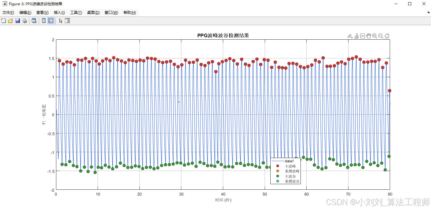 基于预处理后的平滑信号,采用 “动态阈值 + 生理约束 + 后处理优化” 的波峰波谷检测算法,取得优异的检测效果。