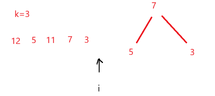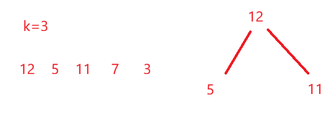 首先找出数组中前k个元素,用前k个元素构建一个大根堆,如下图