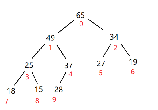 将以数组={ 27,15,19,18,28,34,65,49,25,37 }为例,如何将集合中的元素构建成一个大根堆呢?