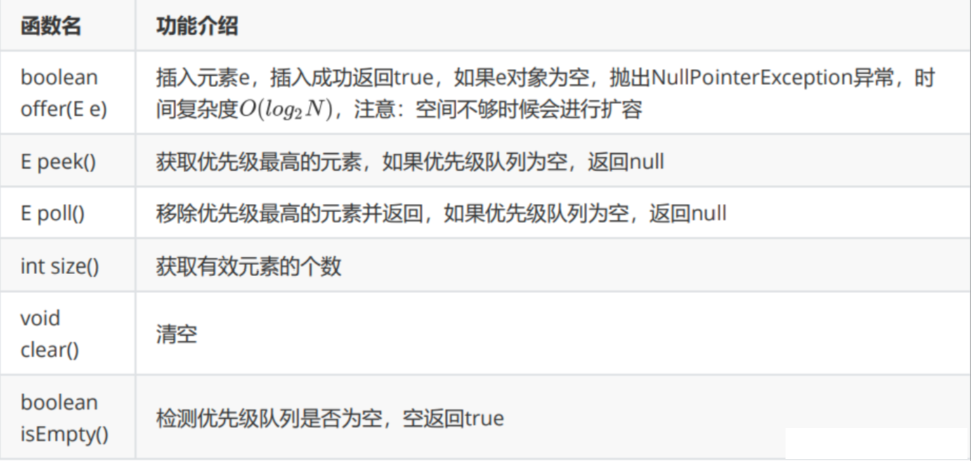 注意:默认情况下,PriorityQueue队列是小堆,如果需要大堆需要用户提供比较器,如一下代码