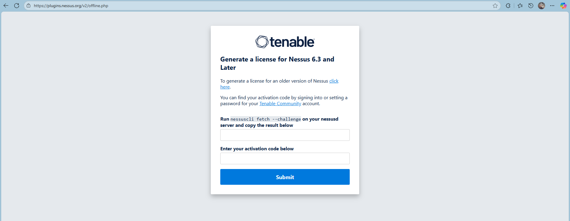 /opt/nessus/sbin/nessuscli fetch --challenge