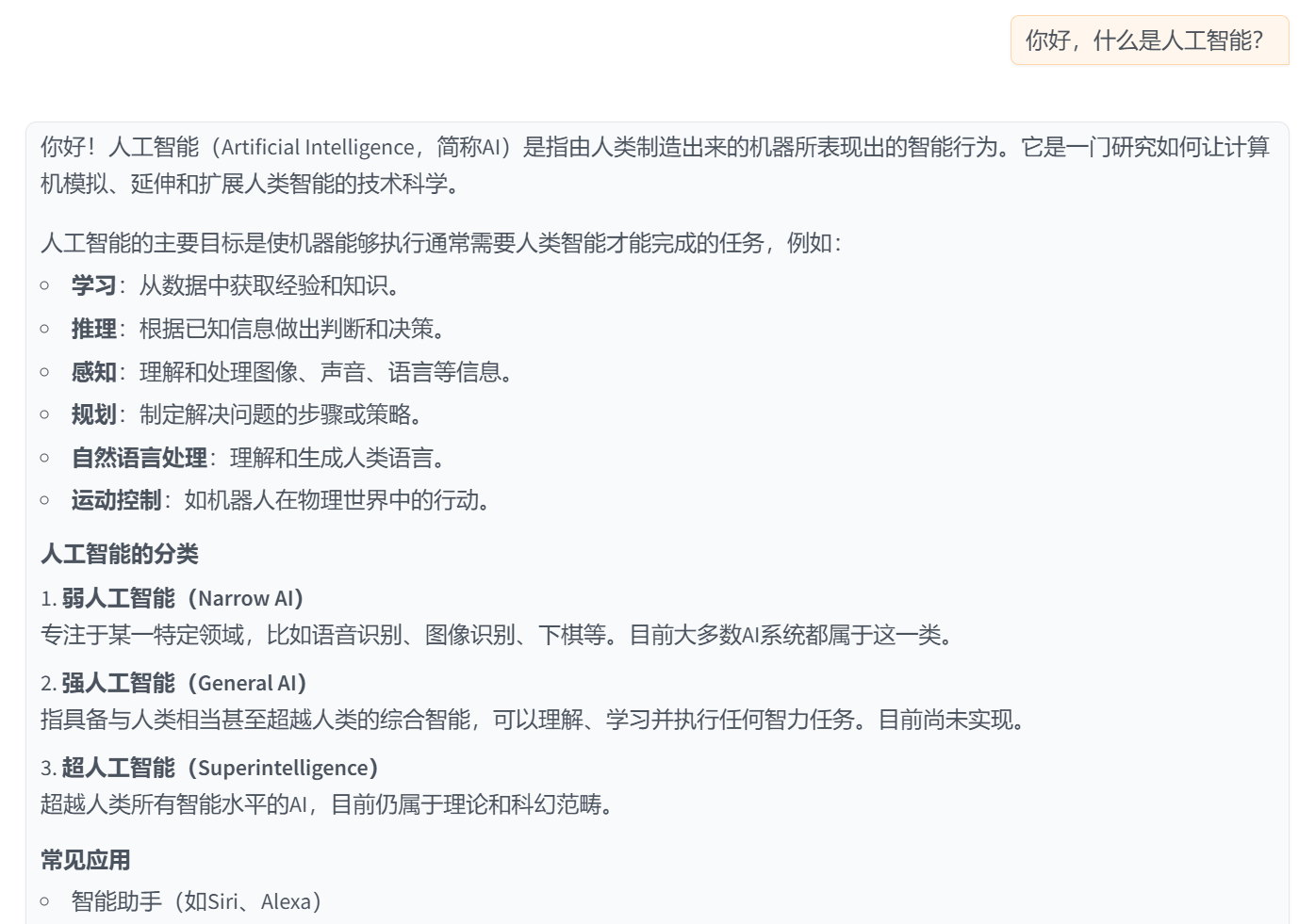 用户输入: 你好,什么是人工智能?