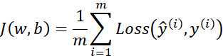 最后说一下,损失函数事在单个训练样本中定义的,它衡量了在单个训练样本上的表现,下面我要定义一个成本函数(cost function),它衡量的是在全体训练样本上的表现。这个成本函数J,是所有训练样本的损失函数和。因此,在训练logistic回归模型时,我们要找到合适的w和b,让成本函数J尽可能的小。