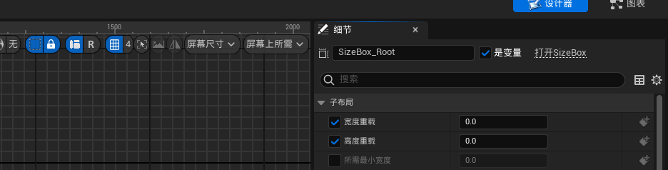 增加两个变量,设置宽高,宽度设置为450,高度为60,用于显示属性名称和数值