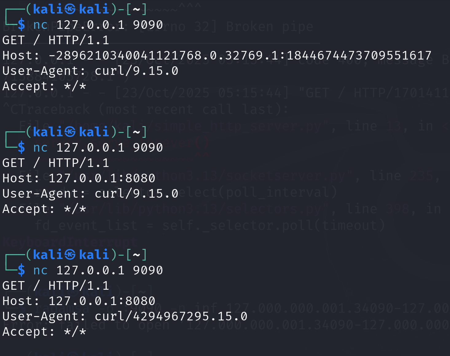 nc 127.0.0.1 9090