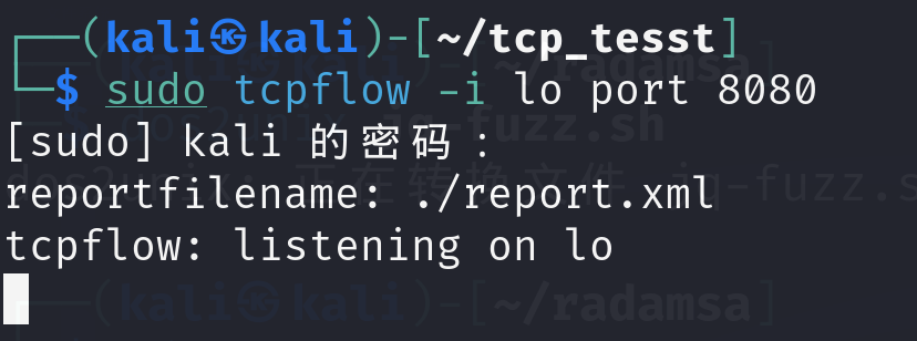 sudo tcpflow -i lo port 8080 # -i lo:监听本地回环接口(适合本地测试)