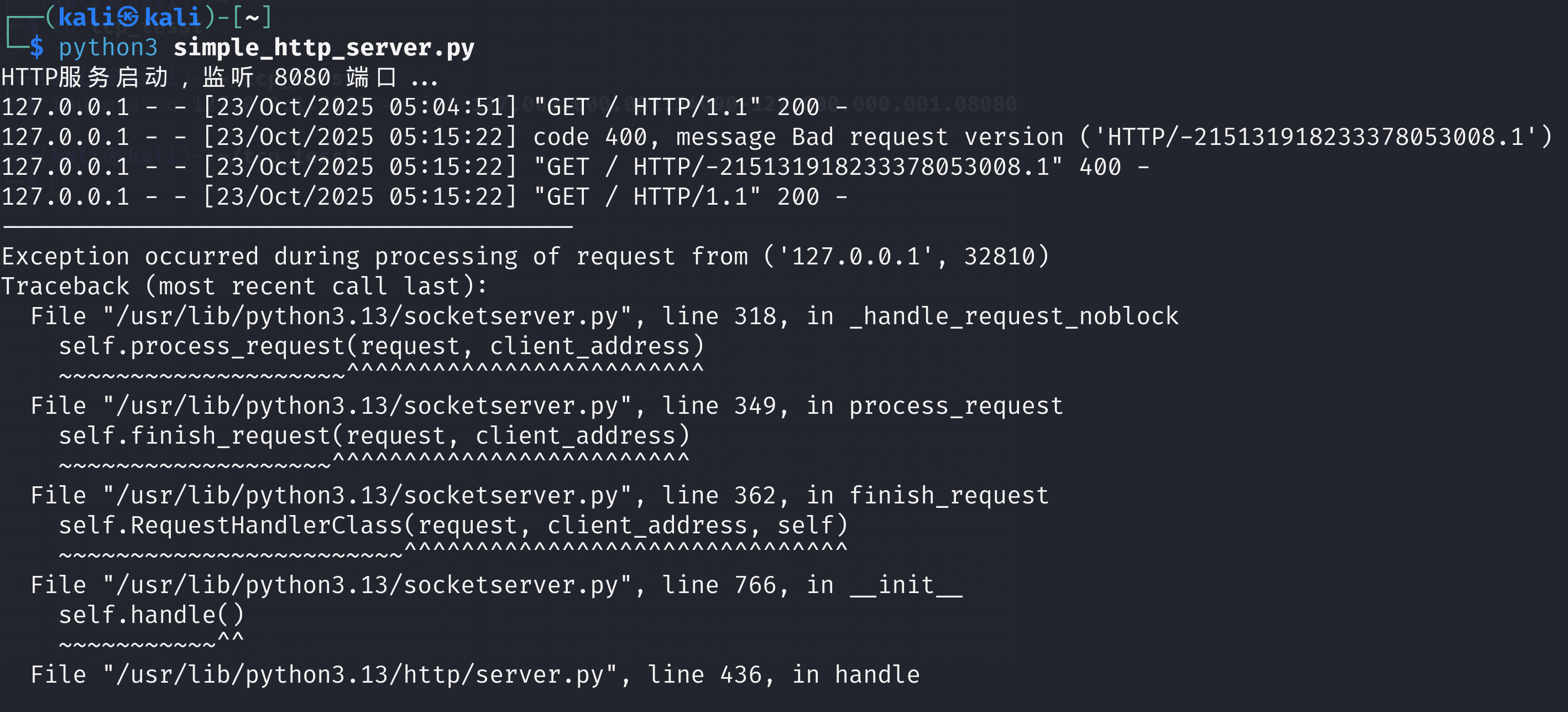 curl http://127.0.0.1:8080 # 发送一个简单的GET请求