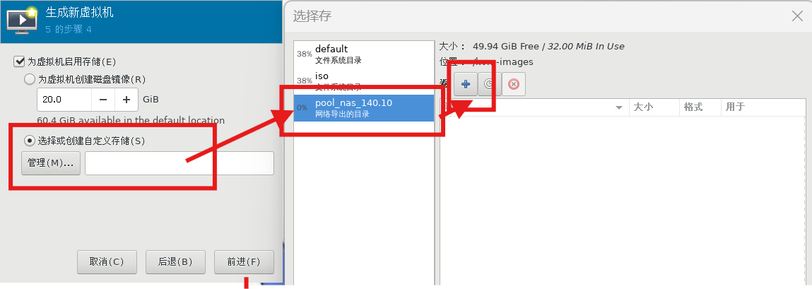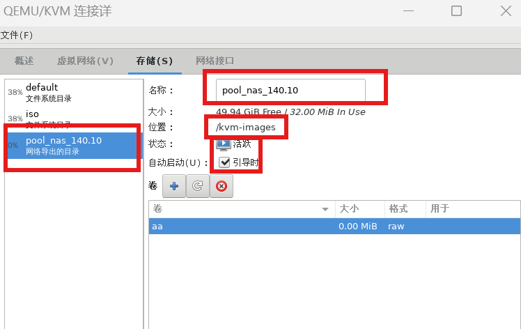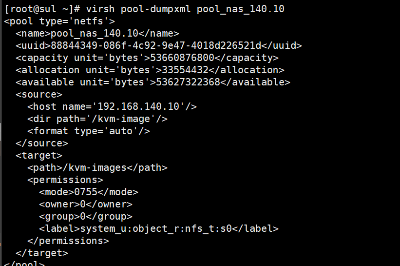 --target /pool_by_nfs # KVM主机本地挂载点(自动创建)# 步骤2:创建存储池的本地挂载点