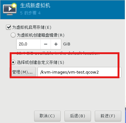 chmod -R 775 /kvm-images/ # 所有者和组都有读写执行权限(2)图形化创建
