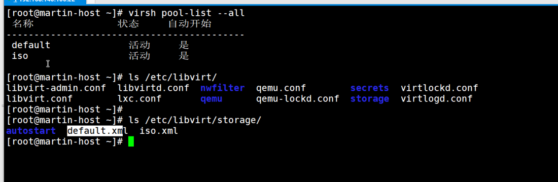 [root@martin-host ~]# virsh pool-list --allName State Autostart