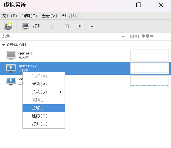 离线迁移是指在虚拟机关机或暂停状态下进行迁移。这种迁移方式不要求必须使用网络存储池,因为虚拟机处于非运行状态,可先将本地存储上的虚拟机磁盘镜像文件、配置文件等复制到外部存储设备(如移动硬盘、USB 闪存盘等),再手动将其复制到目标主机的本地存储位置,或者直接通过网络将本地存储中的相关文件传输到目标主机,从而完成迁移。