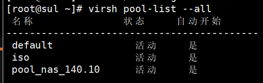 -------------------------------------------default active yes iso active yes pool_by_nfs active yes # 新创建的NFS存储池# 步骤5:验证挂载结果(NFS目录已挂载到/pool_by_nfs)