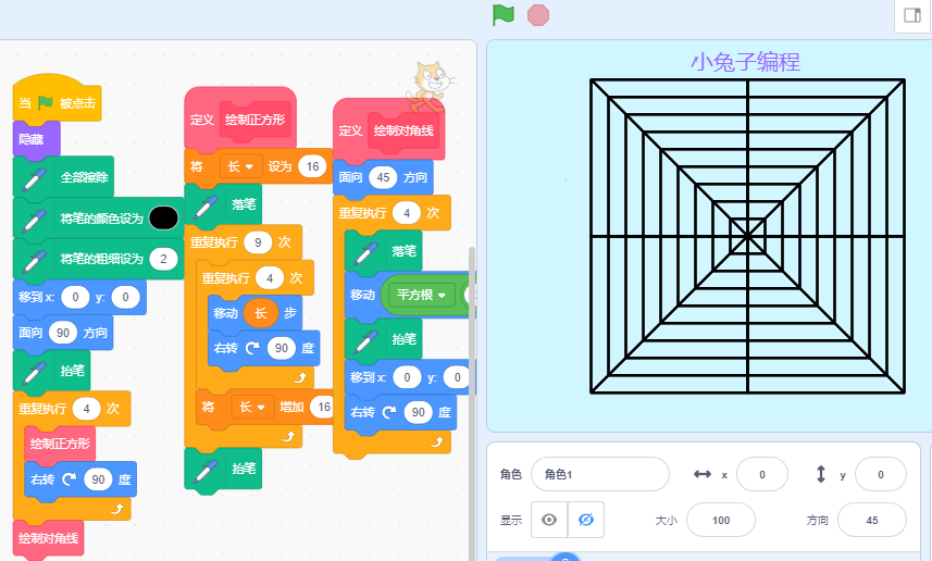 - 所以核心就是绘制正方形,变大的过程只要将边长扩大即可