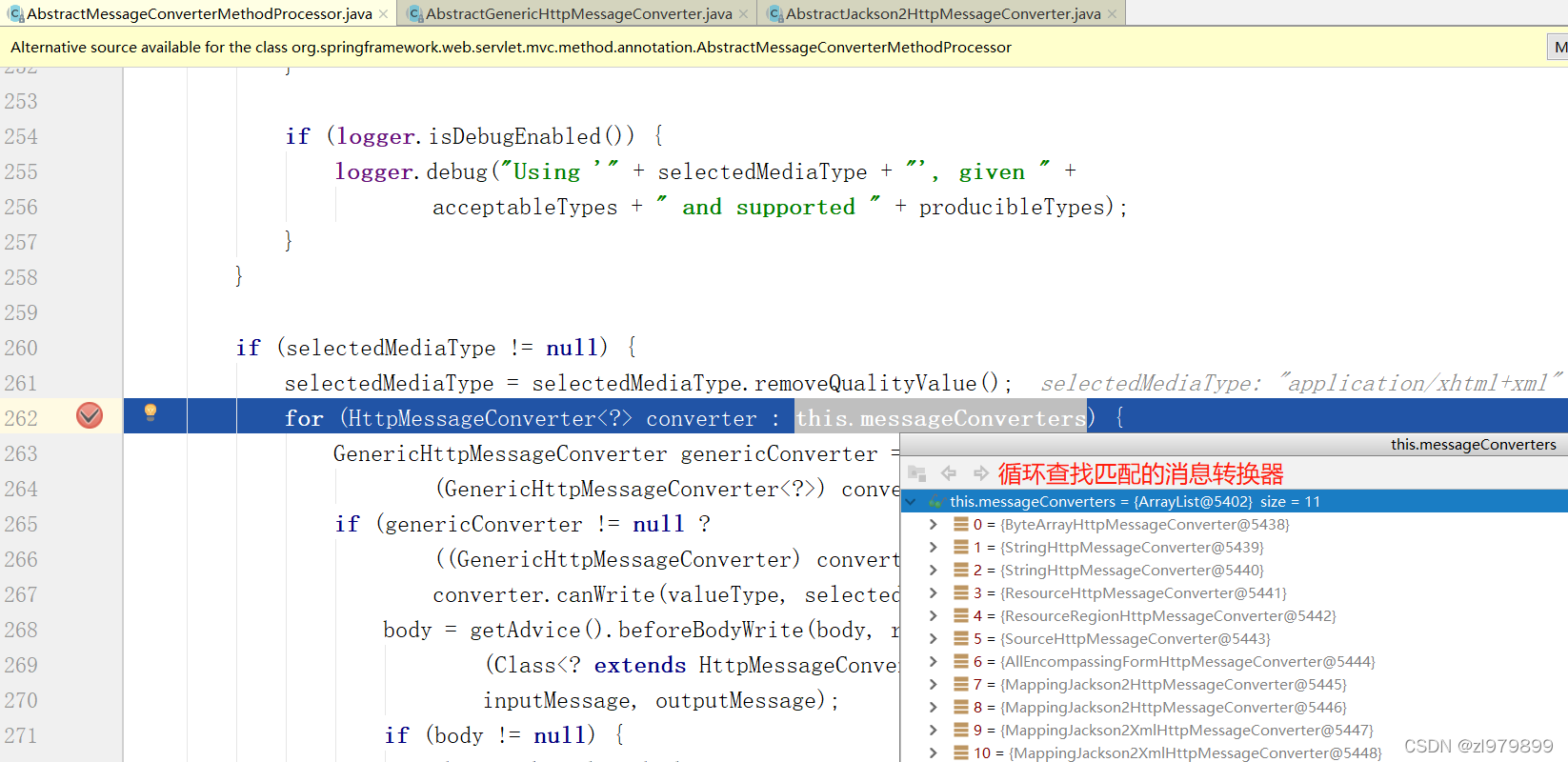 3. SpringMVC会遍历所有容器底层的 HttpMessageConverter ,看谁能处理?