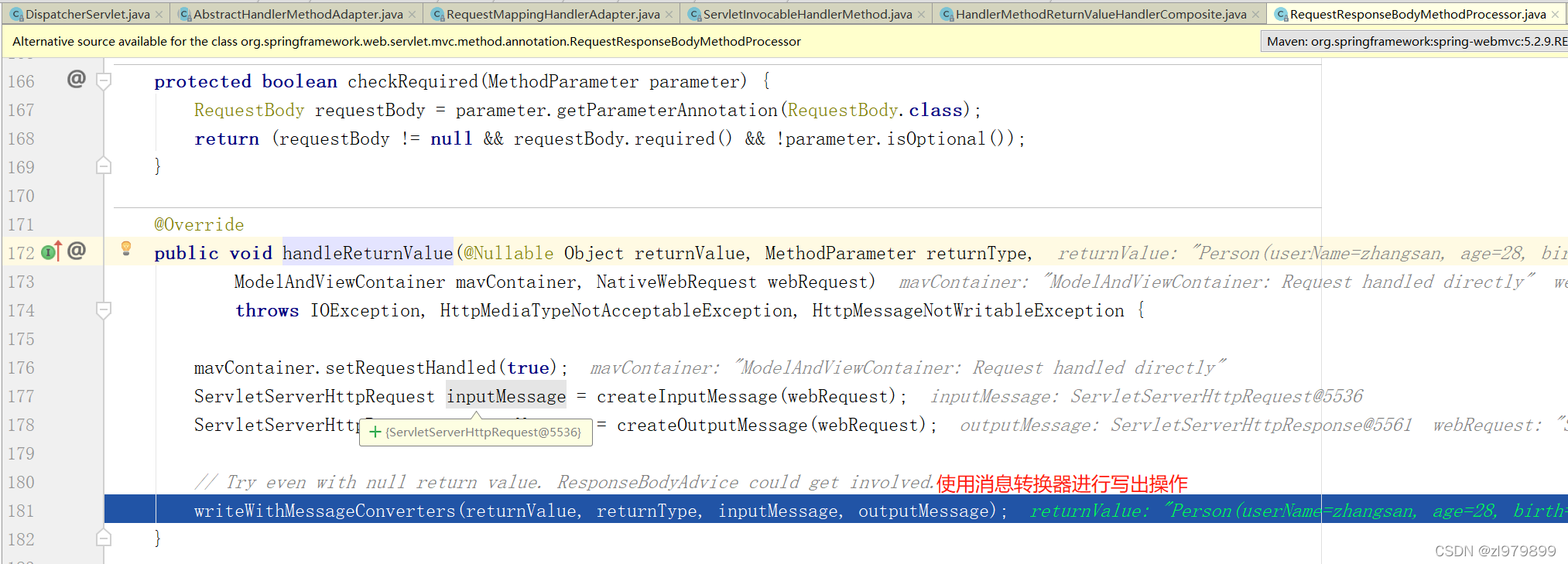 1. RequestResponseBodyMethodProcessor解析器处理返回值标了注解@ResponseBody