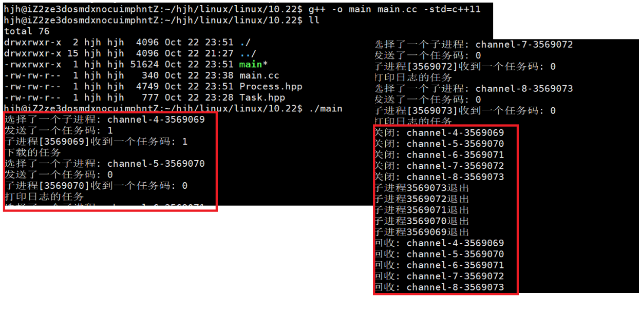 {// 创建进程池对象ProcessPool pp(gdefaultnum);// 启动进程池pp.Start();// 自动派发任务int cnt = 10;while(cnt--){pp.Run();sleep(1);}// 回收,结束进程池pp.Stop();return 0;