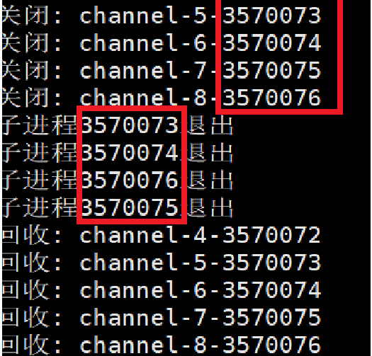 从上述结果可以看到,通信信道是依次关闭的,子进程也是依次回收的,但是子进程退出的顺序是反的。这是为什么呢?