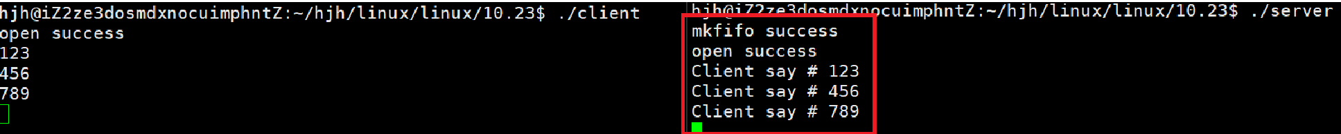 public:namefile(const std::string path, const std::string name): _path(path), _name(name), _fd(-1){_filename = _path + "/" + _name;}void OpenForRead(){_fd = open(_filename.c_str(), O_RDONLY);if (_fd < 0)ERR_EXIT("open");else if (_fd > 0){std::cout << "open success" << std::endl;}else{}}void OpenForWrite(){_fd = open(_filename.c_str(), O_WRONLY);if (_fd < 0)ERR_EXIT("open");else if (_fd > 0){std::cout << "open success" << std::endl;}else{}}// 服务端进行读void Read(){char buf[1024];int n;while (true){n = read(_fd, buf, sizeof(buf) - 1);buf[n] = 0;if (n > 0){std::cout << "Client say # " << buf << std::endl;}else if (n == 0){std::cout << "Client quit! me too !" << std::endl;break;}else{// TODO}}}// 客户端进行写void Write(){std::string message;while (true){std::cin >> message;int n = 0;write(_fd, message.c_str(), message.size());}}void Close(){close(_fd);}private:std::string _path;std::string _name;std::string _filename;int _fd;