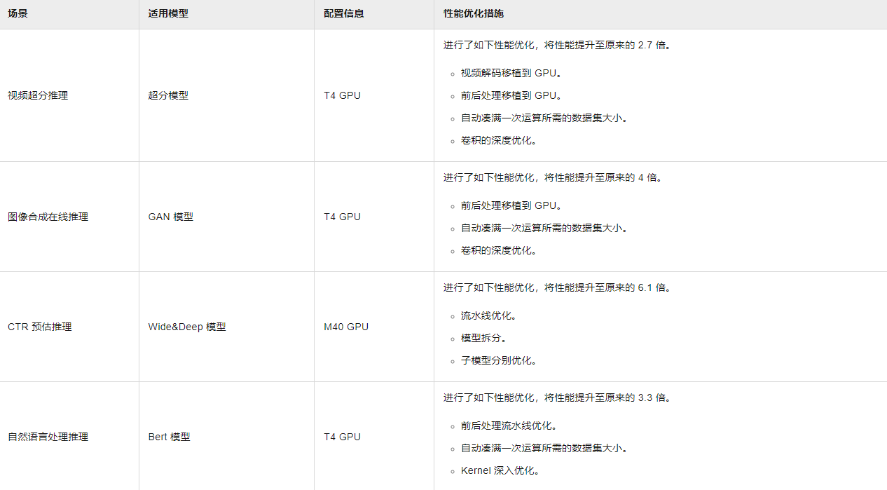 GPU计算型实例规格族gn6i具有优异的AI推理能力,满足了深度学习(尤其是推理)场景下的算力需求。具体说明如下: