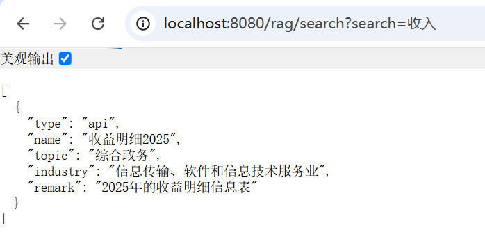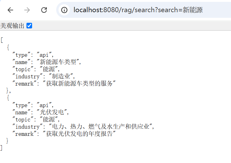 本文以智能搜索引擎场景,通过 RAG 技术,实现了全文搜索、模糊搜索、同义词推荐等功能,并以结构化的方式返回搜索结果。需要注意的是,在企业应用中,要把 SimpleVectorStore 改为成熟的第三方向量数据库,例如 milvus、elasticsearch、redis 等。