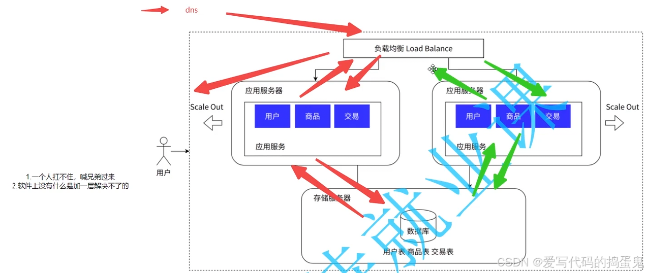 应用服务集群架构:引入了负载均衡,应用以集群方式运作。
