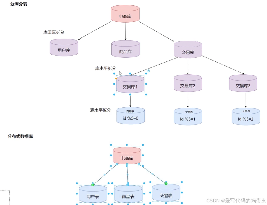 垂直分库架构:数据库的数据被拆分,数据库数据分布式存储,分布式处理,分布式查询,也可以理解为分布式数据库架构。【即根据业务维度来对数据库进行拆分。将原本耦合在一起的不同业务的数据,分散到不同的数据库中。】
