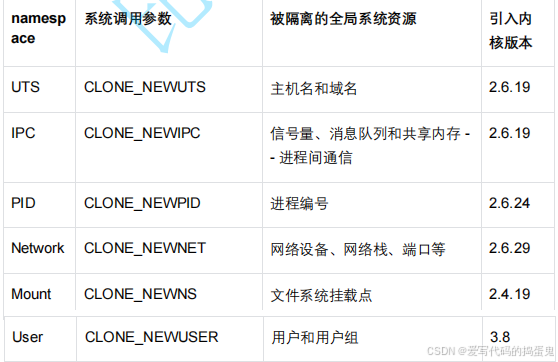 Linux namespaces 是对全局系统资源的一种封装隔离,使得处于不同 namespace 的进程拥有独立的全局系统资源,改变一个 namespace 中的系统资源只会影响当前namespace 里的进程,对其他 namespace 中的进程没有影响。