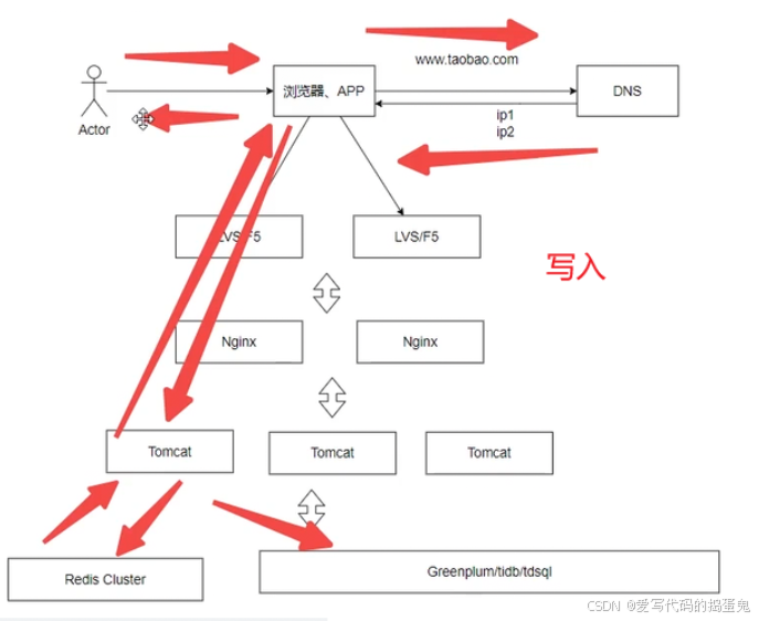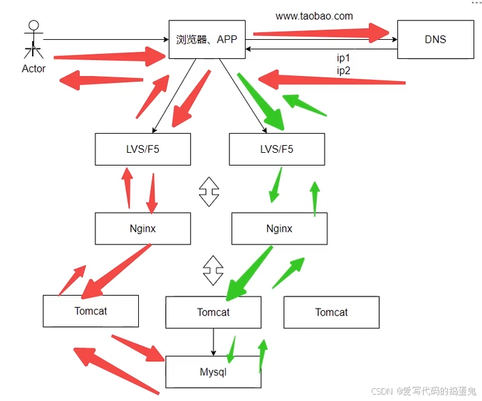 我们打开一个浏览器,访问这个网址,通过DNS获取这个网址的应用服务器的IP地址(负载均衡服务器的任意一个IP地址),之后流程和上述一样。