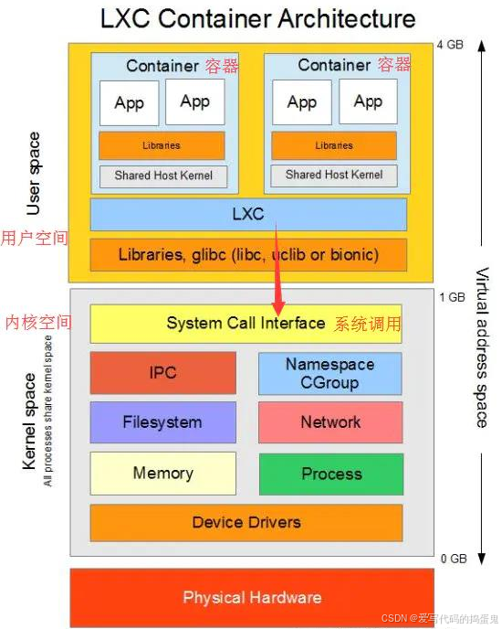 LXC(LinuX Containers)Linux 容器,一种操作系统层虚拟化技术,为 Linux 内核容器功能的一个用户空间接口。它将应用软件系统打包成一个软件容器(Container),内含应用软件本身的代码,以及所需要的操作系统核心和库。透过统一的名字空间和共享 API 来分配不同软件容器的可用硬件资源,创造出应用程序的独立沙箱运行环境,使得 Linux 用户可以容易的创建和管理系统或应用容器。LXC 是最早一批真正把完整的容器技术用一组简易使用的工具和模板来极大的简化了容器技术使用的一个方案LXC 虽然极大的简化了容器技术的使用,但比起直接通过内核调用来使用容器技术,其复杂程度其实并没有多大降低,因为我们必须要学会 LXC 的一组命令工具,且由于内核的创建都是通过命令来实现的,通过批量命令实现数据迁移并不容易。其隔离性也没有虚拟机那么强大。后来就出现了 docker,所以从一定程度上来说,docker 就是 LXC 的增强版。