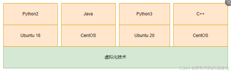 将函数库层以上的功能置于操作系统上。以 Docker 为例,其就是一个基于 Linux 操作系统的 Namespace 和 Cgroup 功能实现的隔离容器,可以模拟操作系统的功能。简单来说,如果虚拟机是把整个操作系统封装隔离,从而实现跨平台应用的话,那么容器则是把一个个应用单独封装隔离,从而实现跨平台应用。所以容器体积比虚拟机小很多,理论上占用资源更少。容器化就是应用程序级别的虚拟化技术。容器提供了将应用程序的代码、运行时、系统工具、系统库和配置打包到一个实例中的标准方法。容器共享一个内核(操作系统),它安装在硬件上。