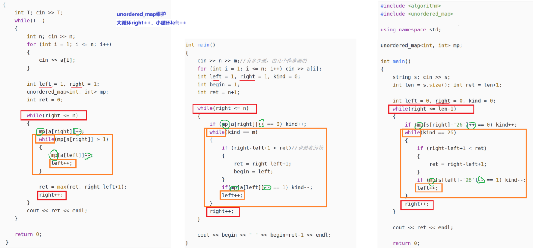 两个指针都不回退,代码相似点:求长度是right-left+1
