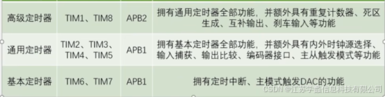 基本定时器的功能最少,他只有基本的定时中断和主模式触发DAC的功能。所以基本定时器还可以和DAC联合使用。